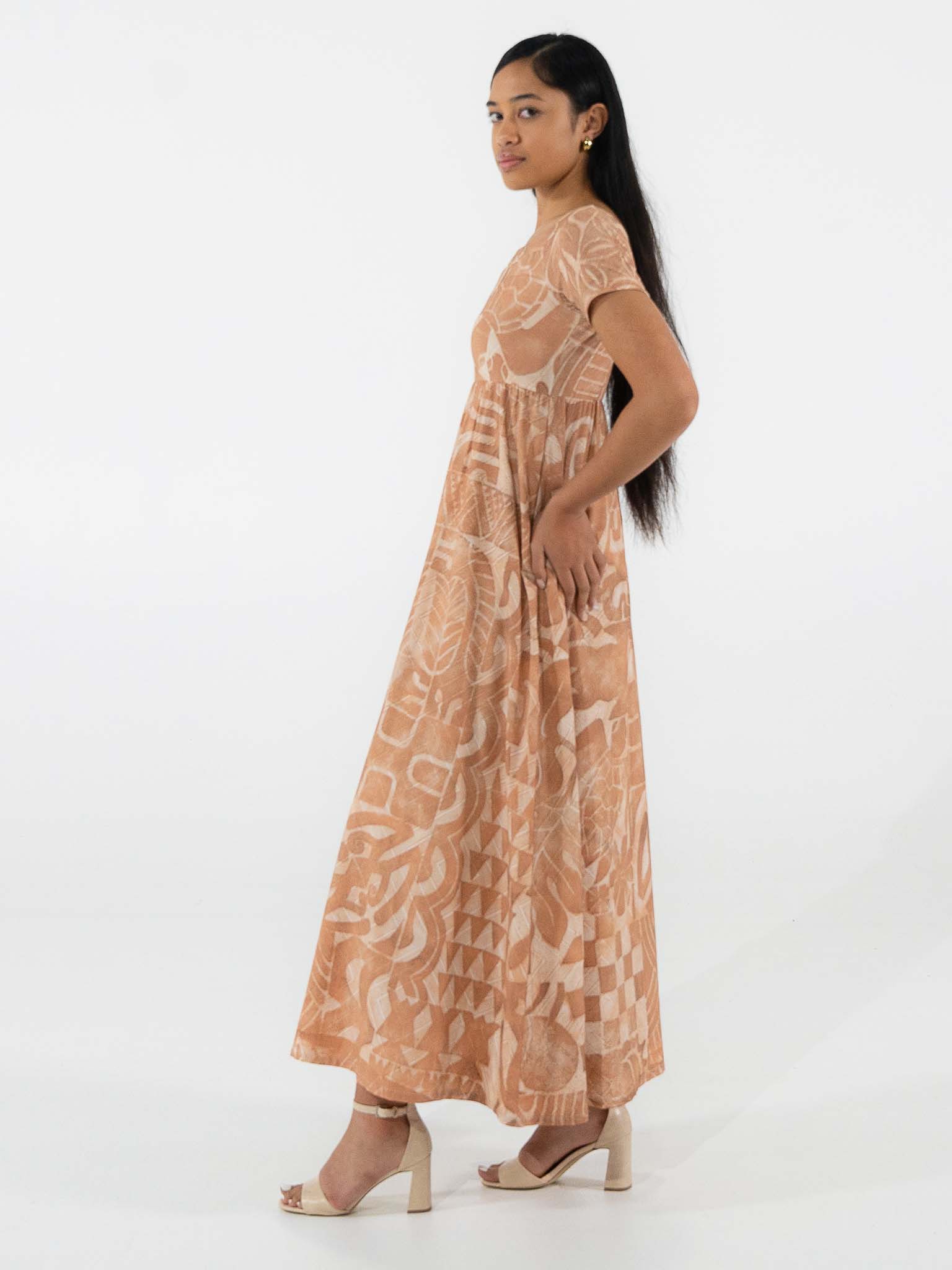 Block printing and painting are all done by hand, on natural fibres such as cotton, lycra, rayon, sheeting, silk, and linen. This artisanal production process means that each piece is unique and no two pieces are exactly the same.