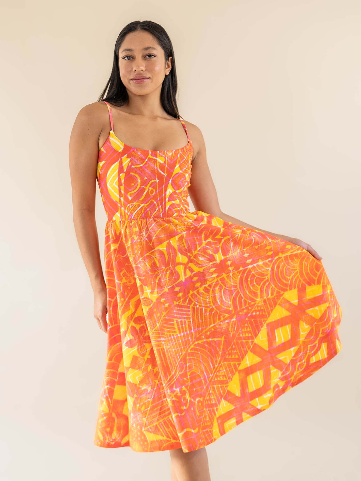 Block printing and painting are all done by hand, on natural fibres such as cotton, lycra, rayon, sheeting, silk, and linen. This artisanal production process means that each piece is unique and no two pieces are exactly the same.