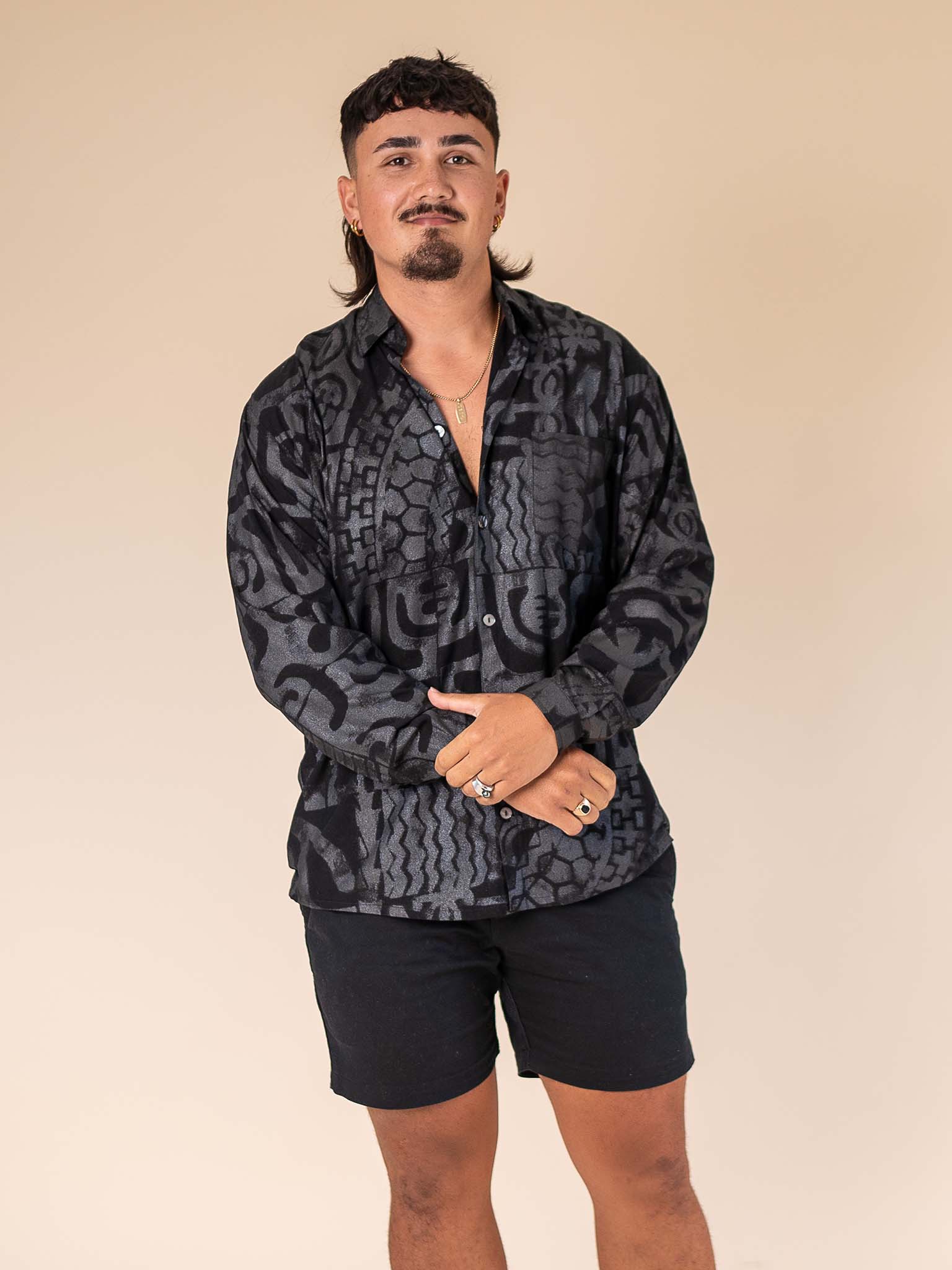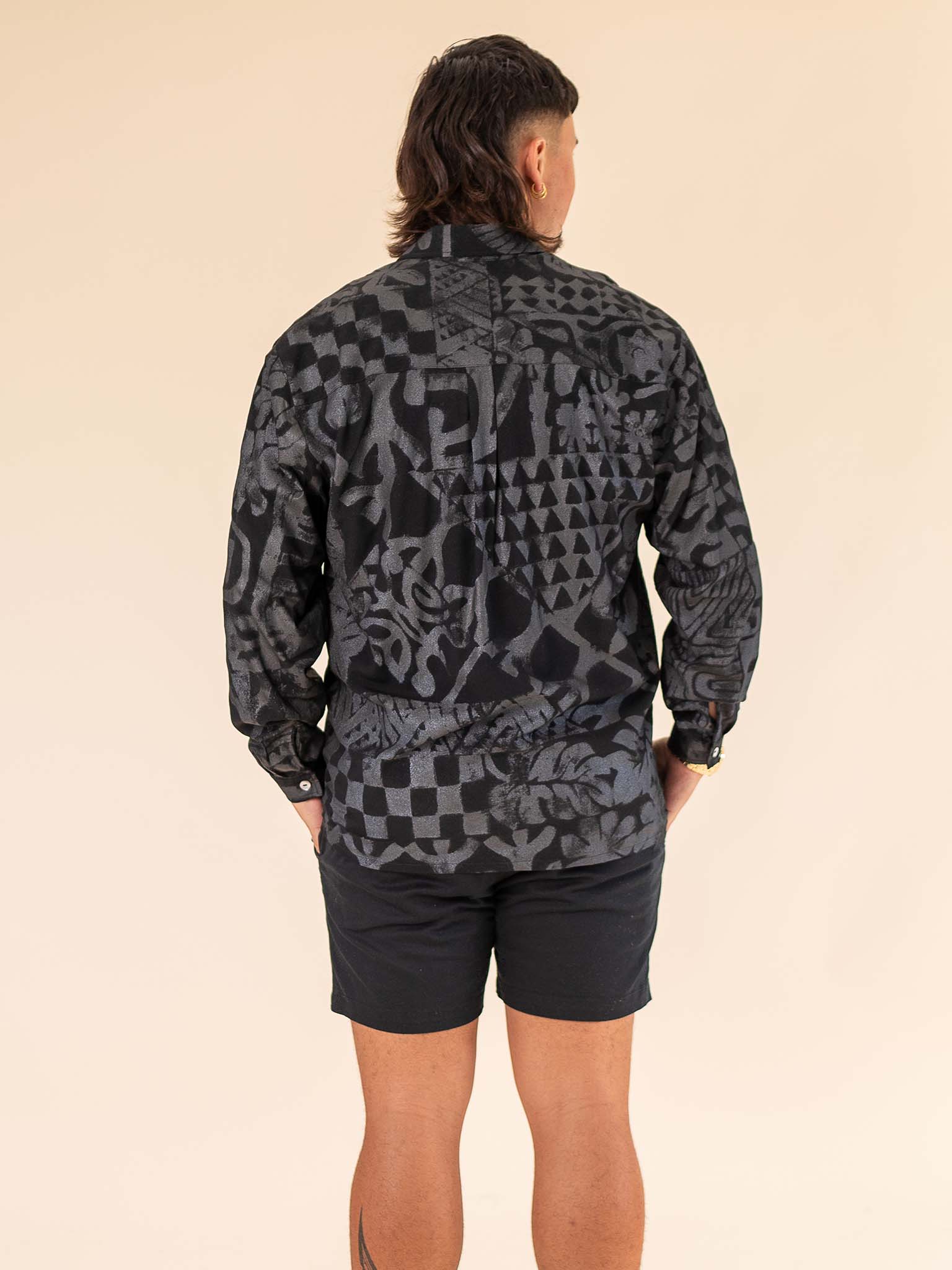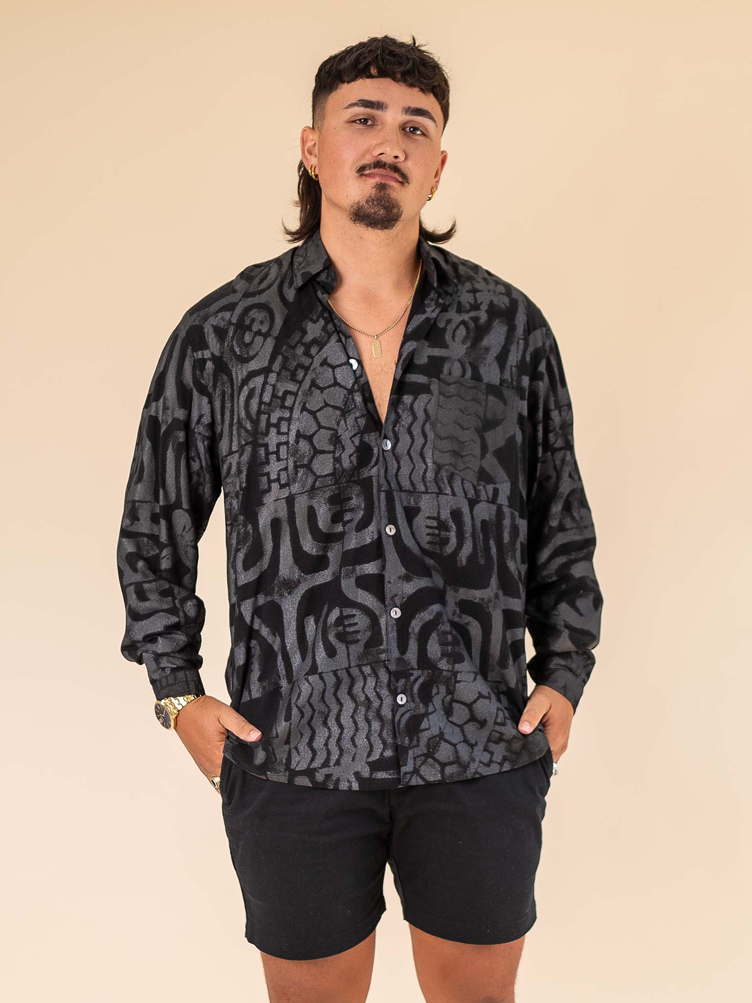Crafted from cotton rayon the Koloa shirt is a soft drapey fit. Long sleeved with mother of pearl shell buttons. Our mens shirts are generously sized.