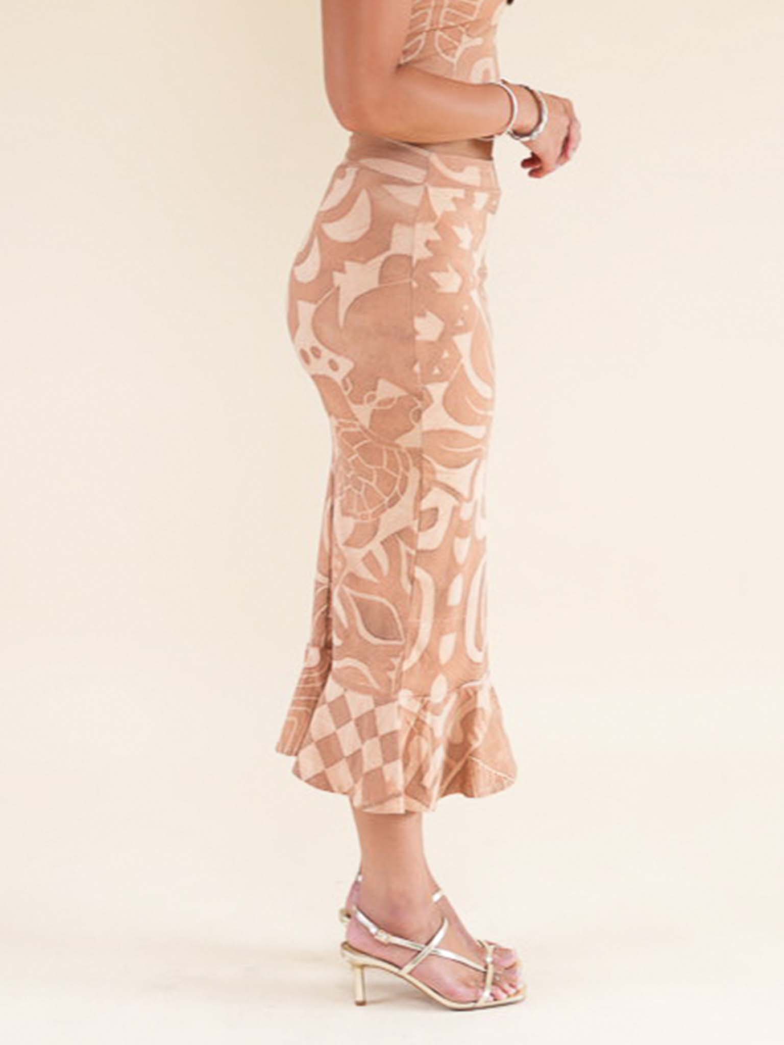 Block printing and painting are all done by hand, on natural fibres such as cotton, lycra, rayon, sheeting, silk, and linen. This artisanal production process means that each piece is unique and no two pieces are exactly the same.