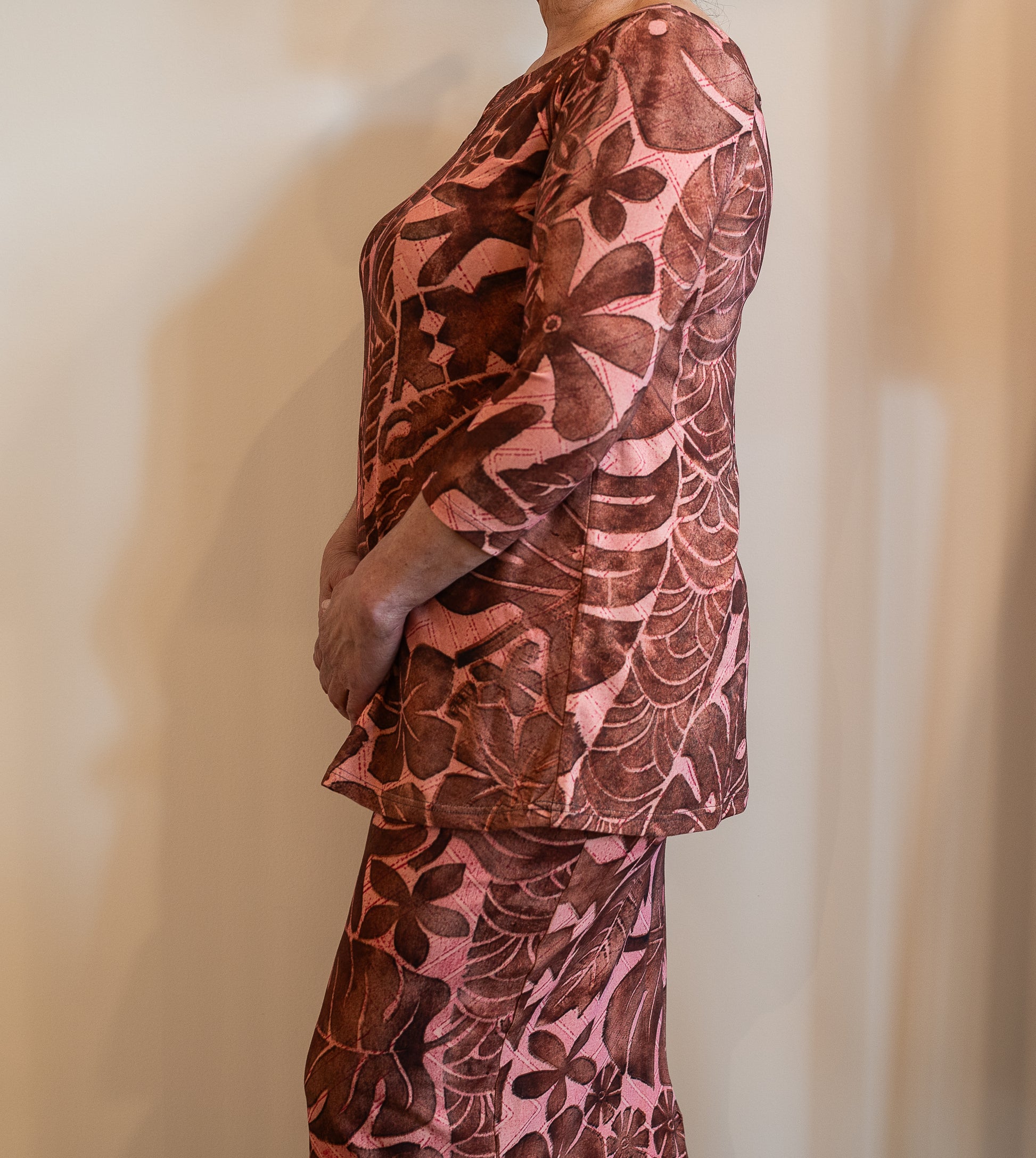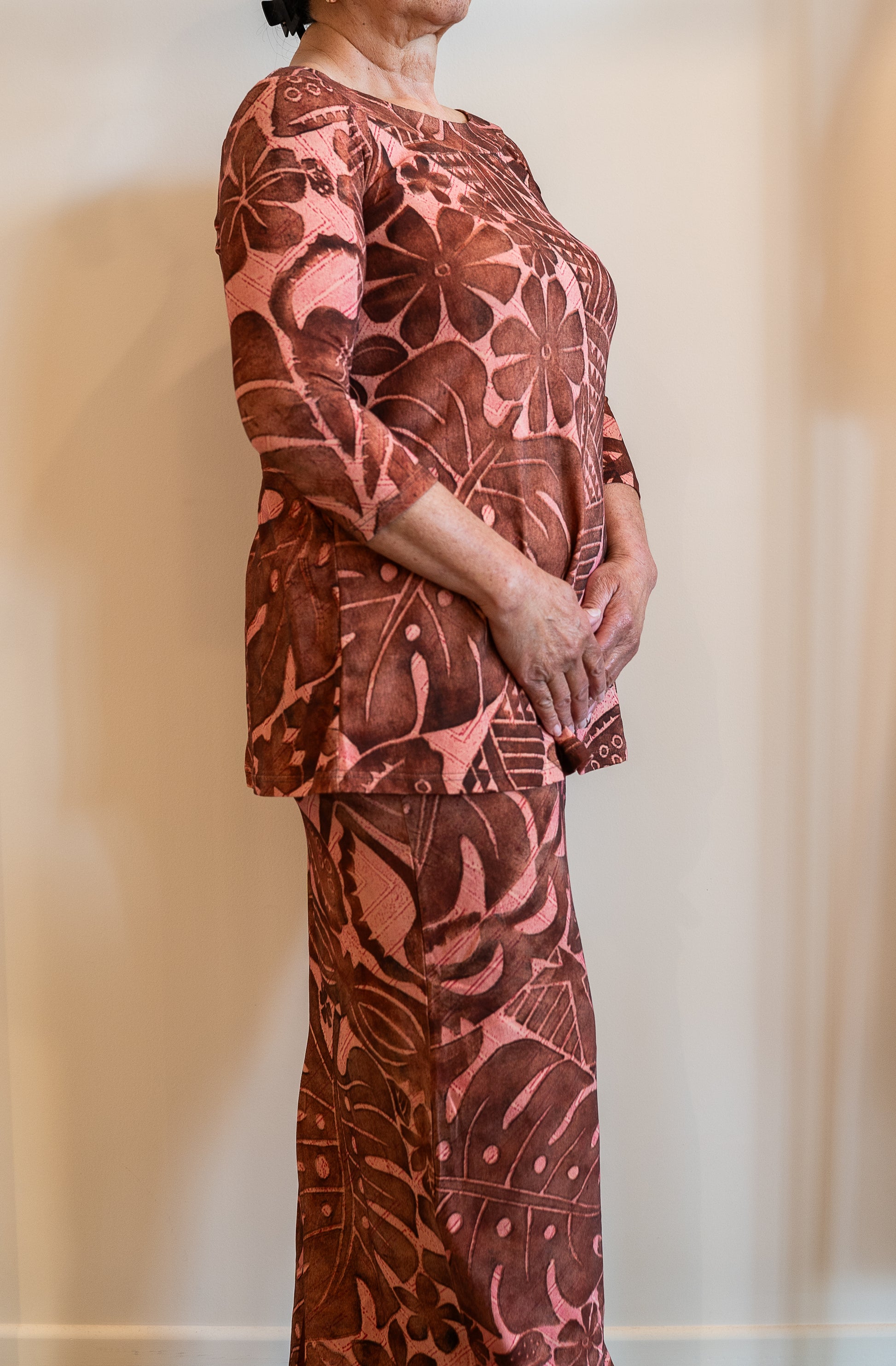 Block printing and painting are all done by hand, on natural fibres such as cotton, lycra, rayon, sheeting, silk, and linen. This artisanal production process means that each piece is unique and no two pieces are exactly the same.