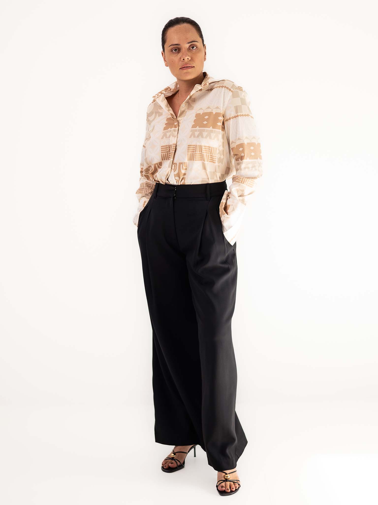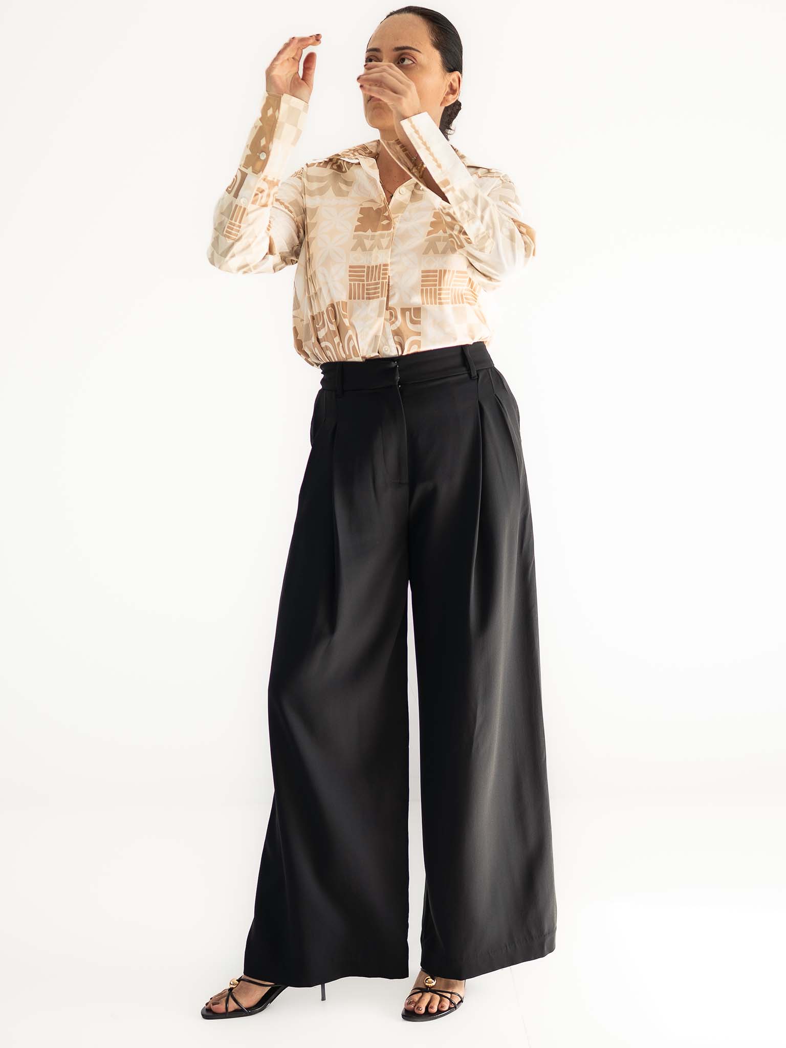 High waisted Double pleat detailing Tailored wide leg pant Side Pockets