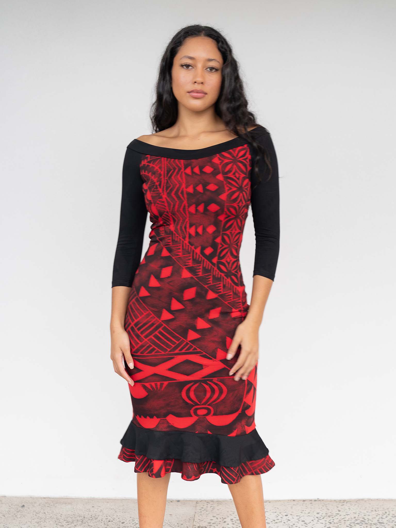 FIT: Designed for a fitted silhouette without sacrificing comfort. A strapless bra friendly, below the knee dress. SIZING: Felicia is wearing size 16, Huna is wearing size 8. Please see size guide for measurements.