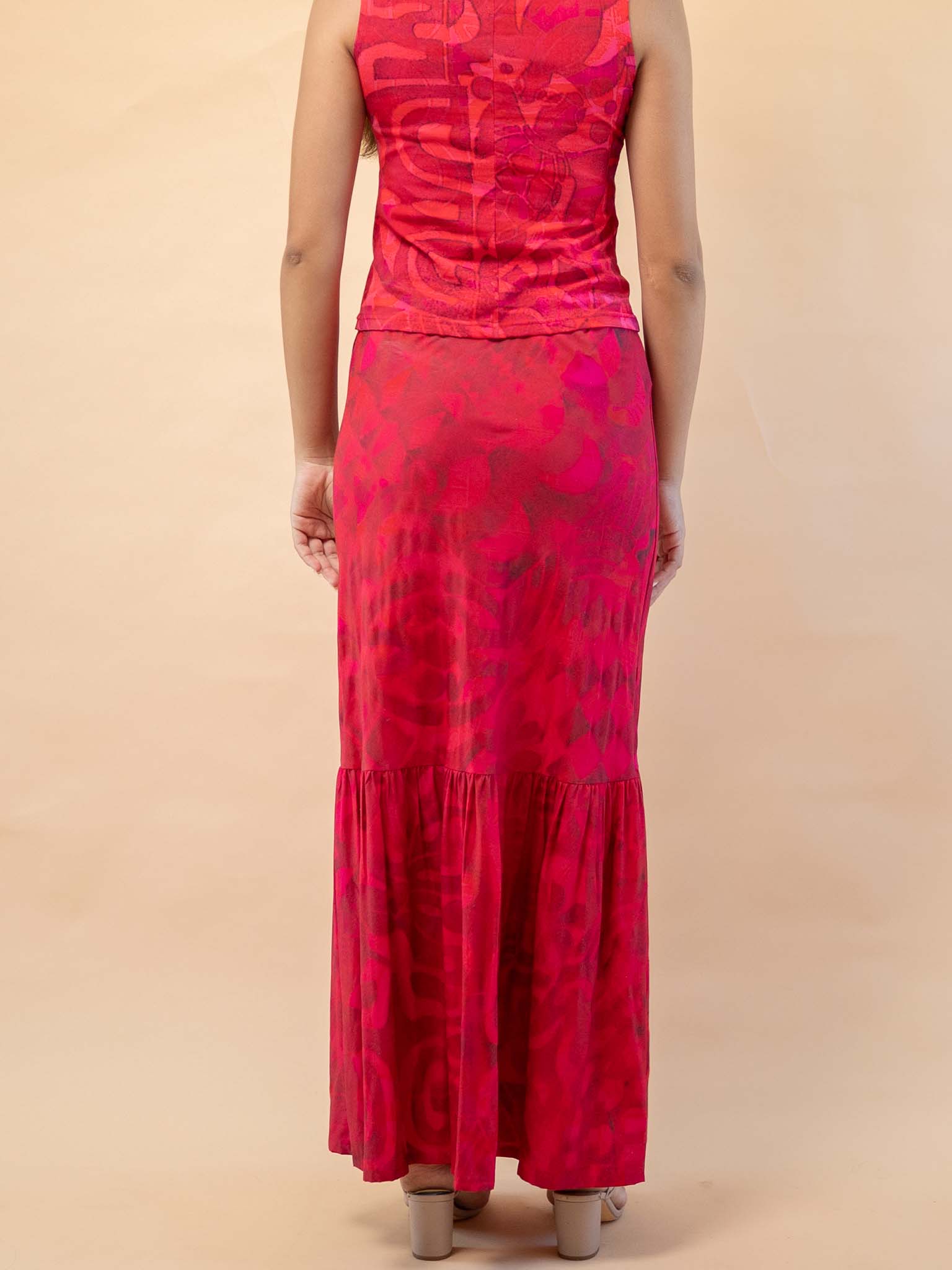 Crafted from a soft, flowy fabric, it drapes beautifully along the body and flares out at the bottom. The skirt sits comfortably at the waist, offering a flattering silhouette that transitions effortlessly from casual days to evening outings.