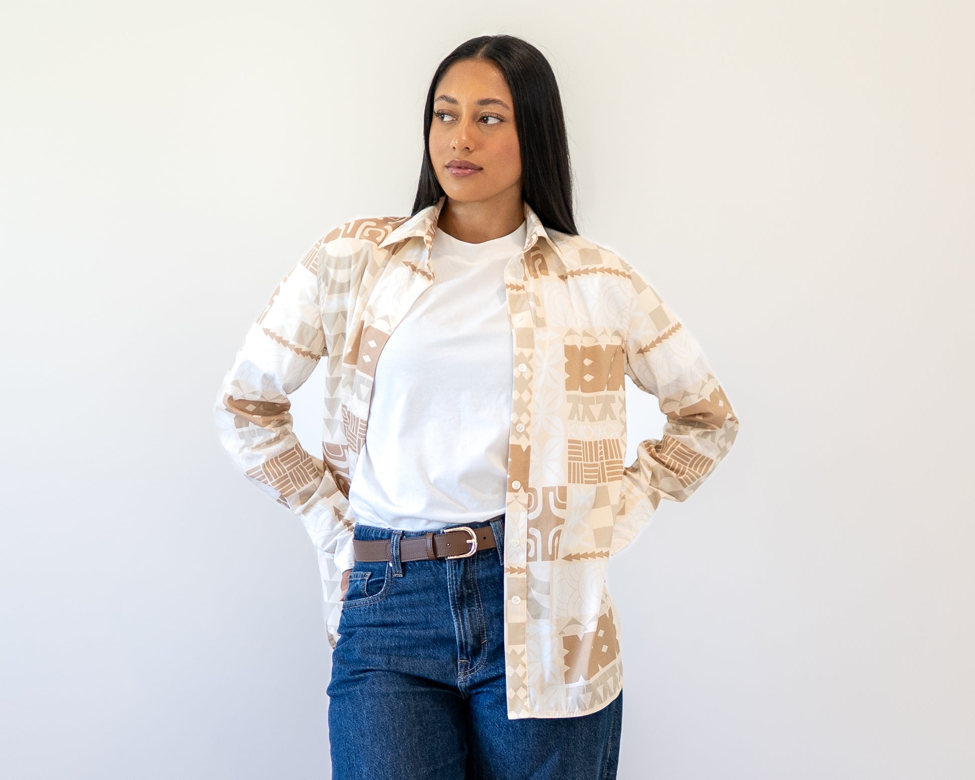 TAV PACIFIC is made from a unique blend of traditional motifs and modern elements of Pacific cultures; hand - carved onto printing boards by Tavioni family artists.
