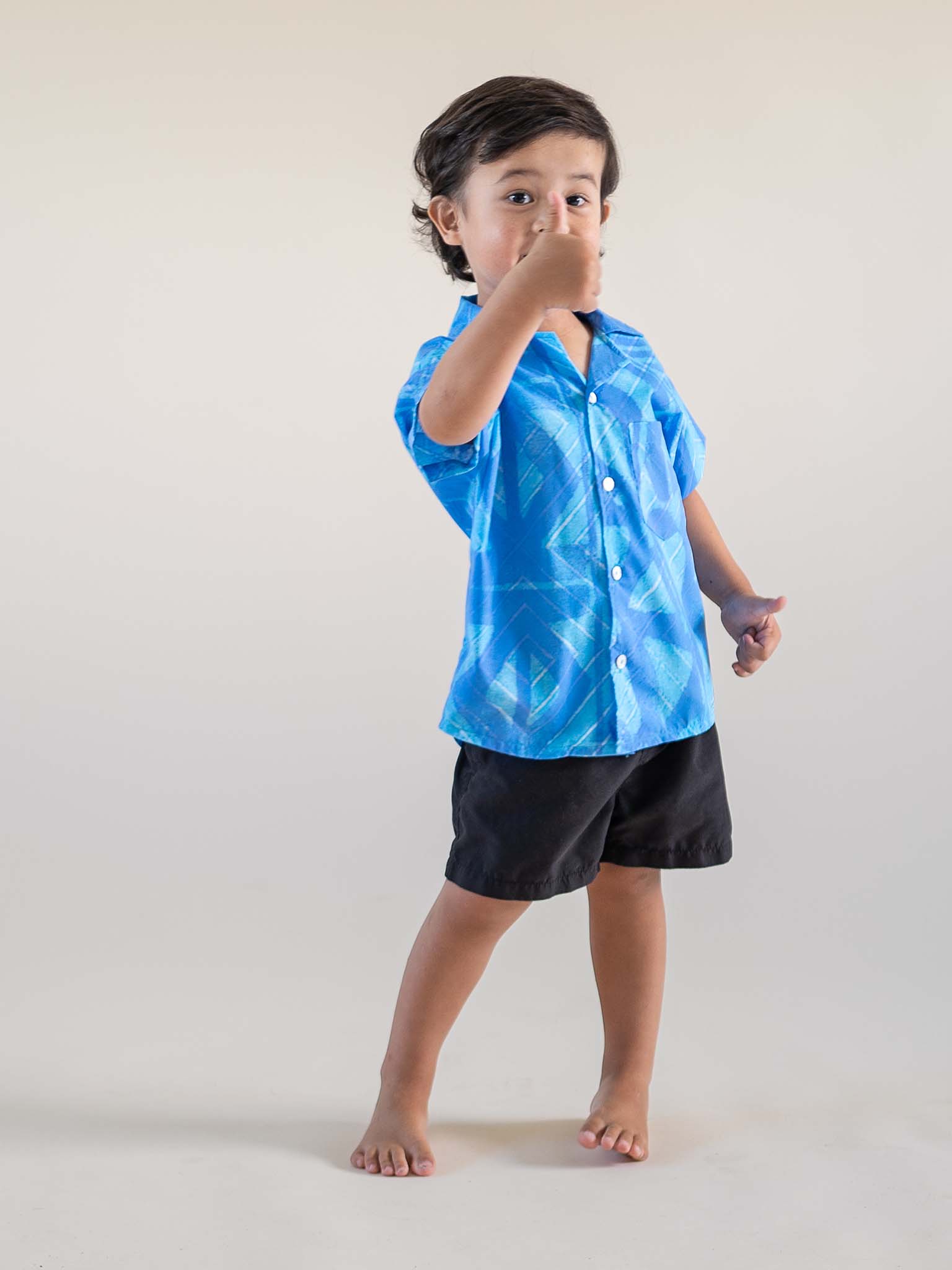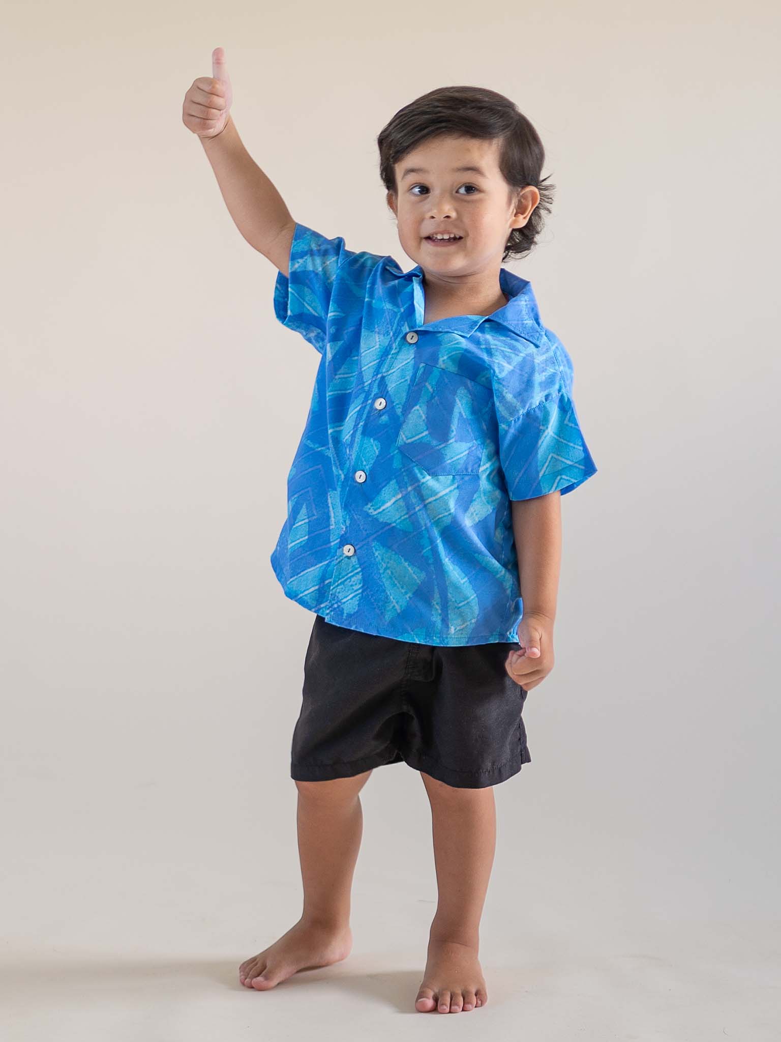 Boys shirt, generously crafted for growing bodies. Mother of pearl shell buttons.