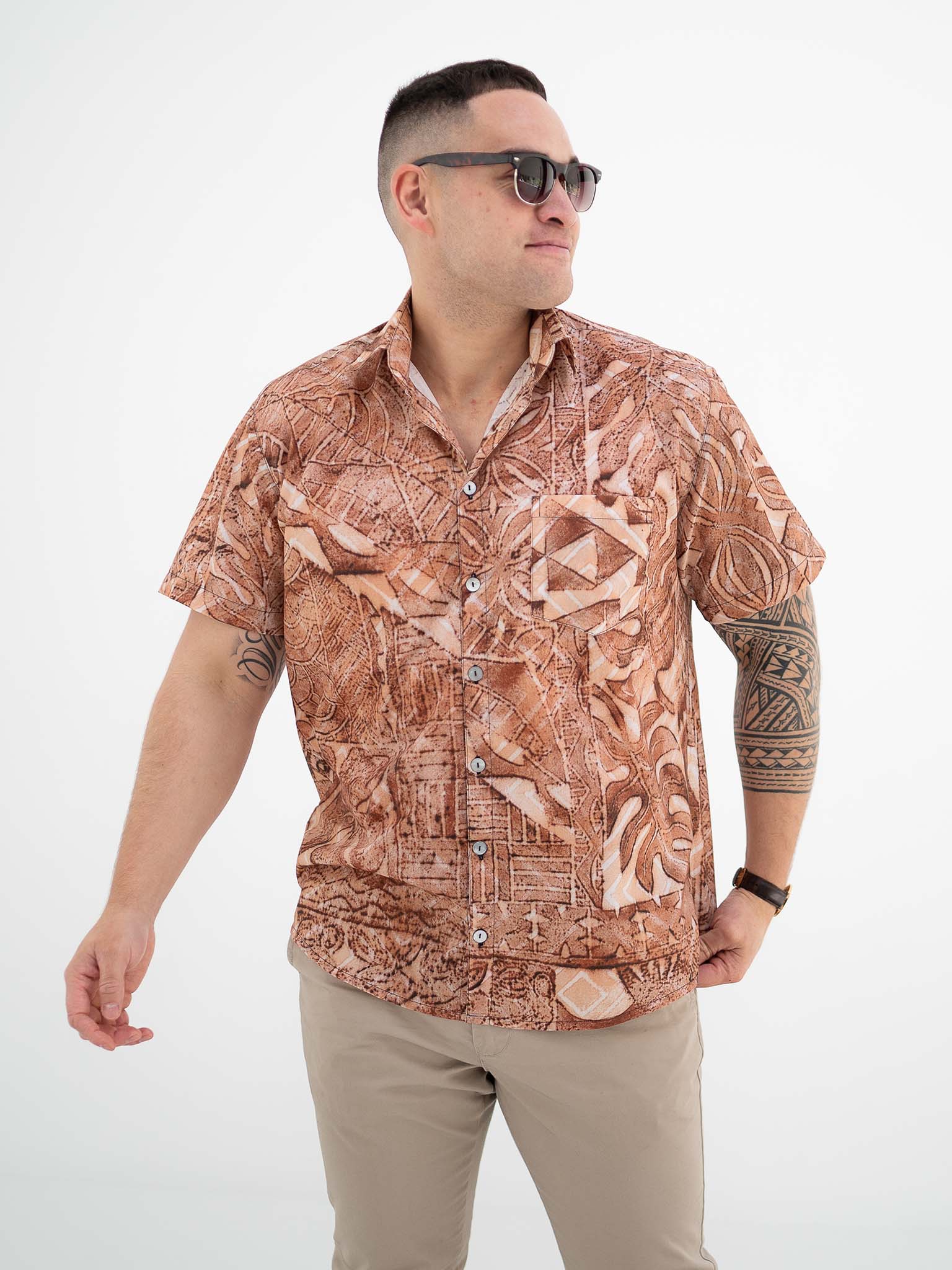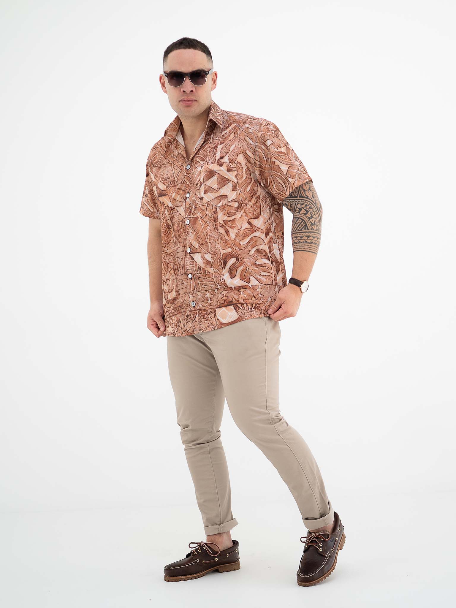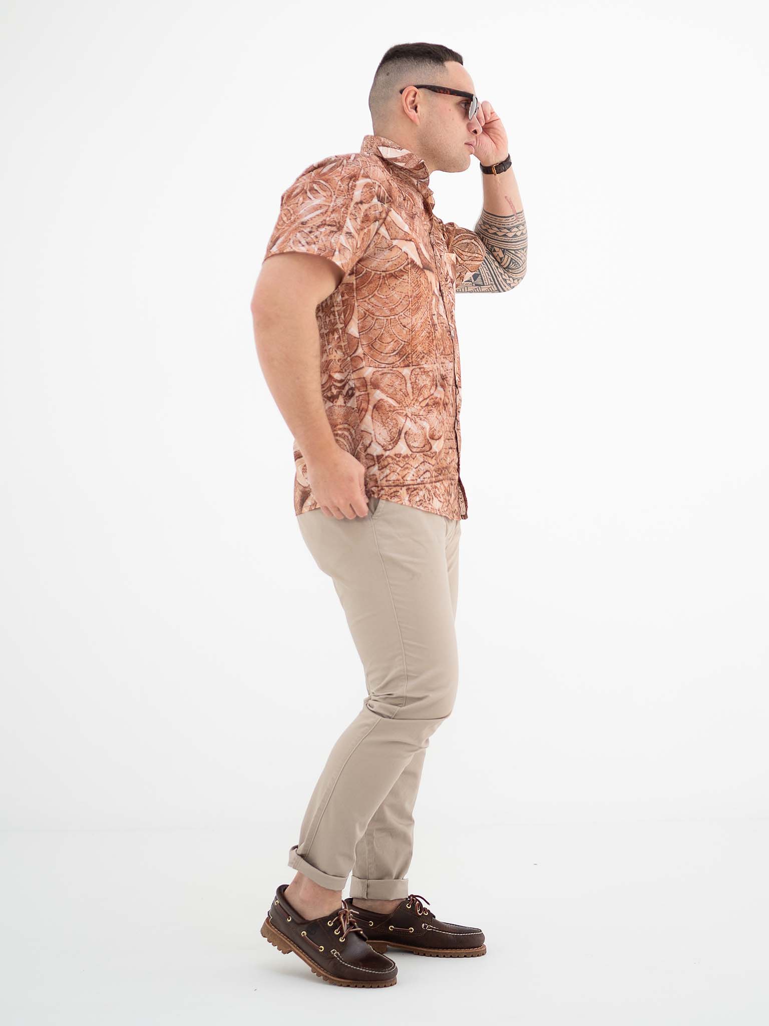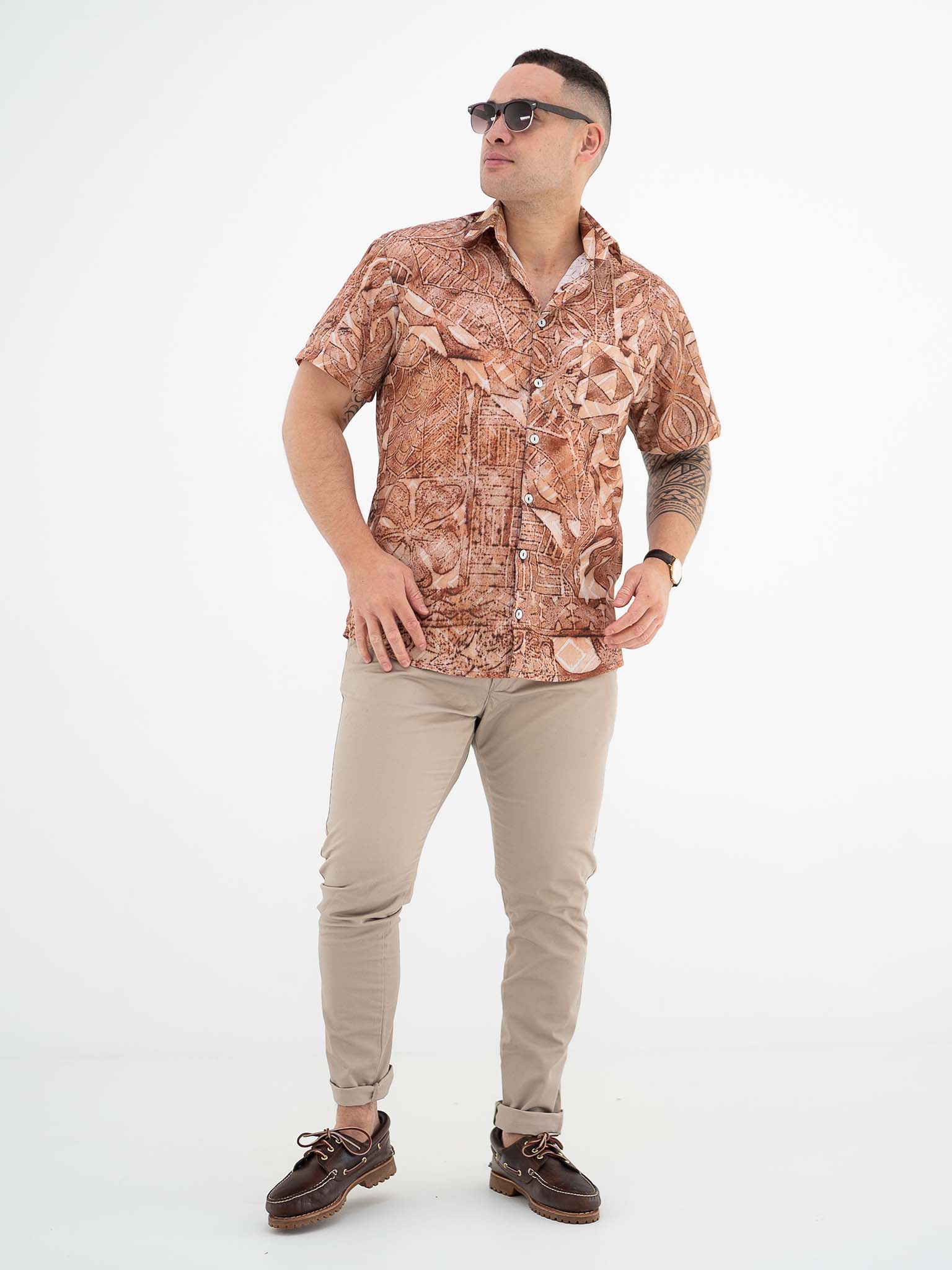 Designed for a boxy loose fit the Taputu shirt is the shirt to get you through those hot tropical nights. Featuring Mother of Pearl shell buttons for the authentic tropical touch.