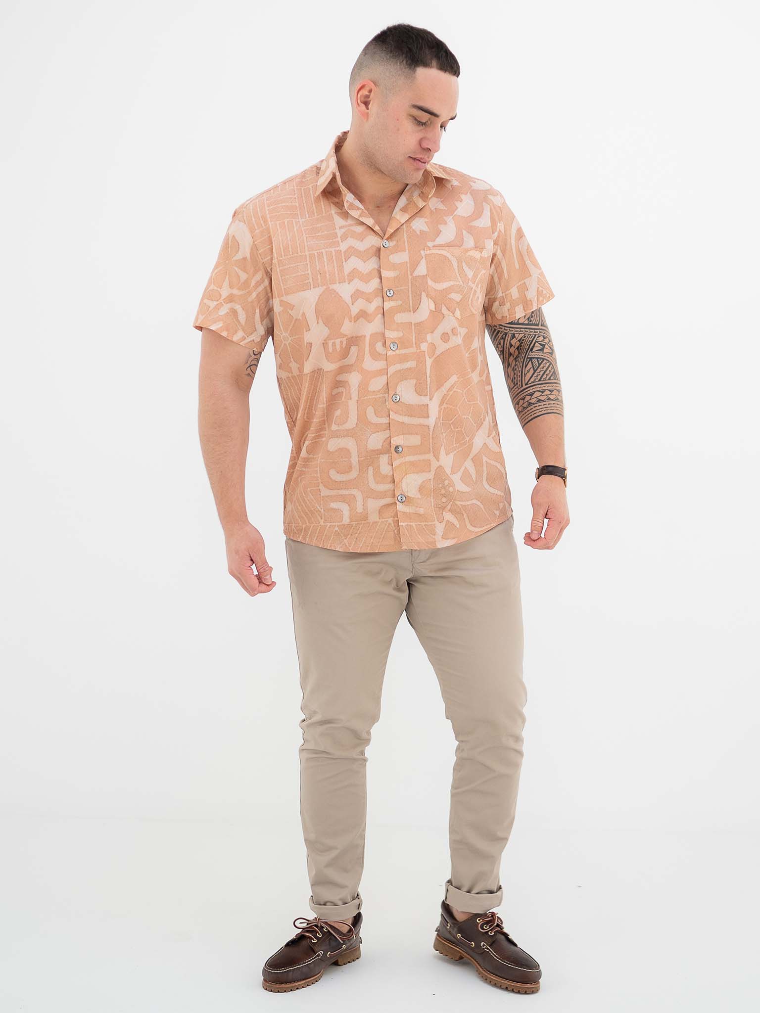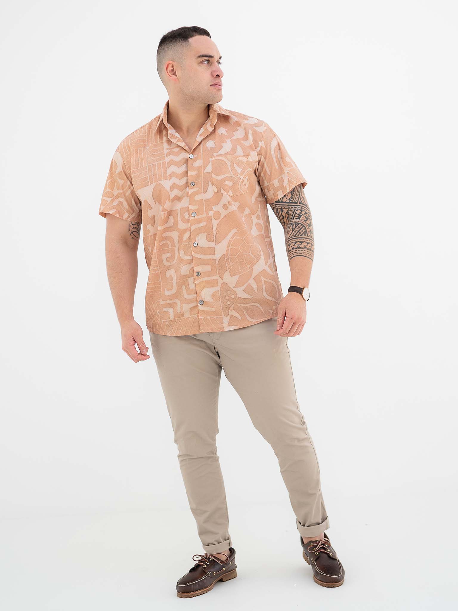 Designed for a boxy loose fit the Taputu shirt is the shirt to get you through those hot tropical nights. Featuring Mother of Pearl shell buttons for the authentic tropical touch.