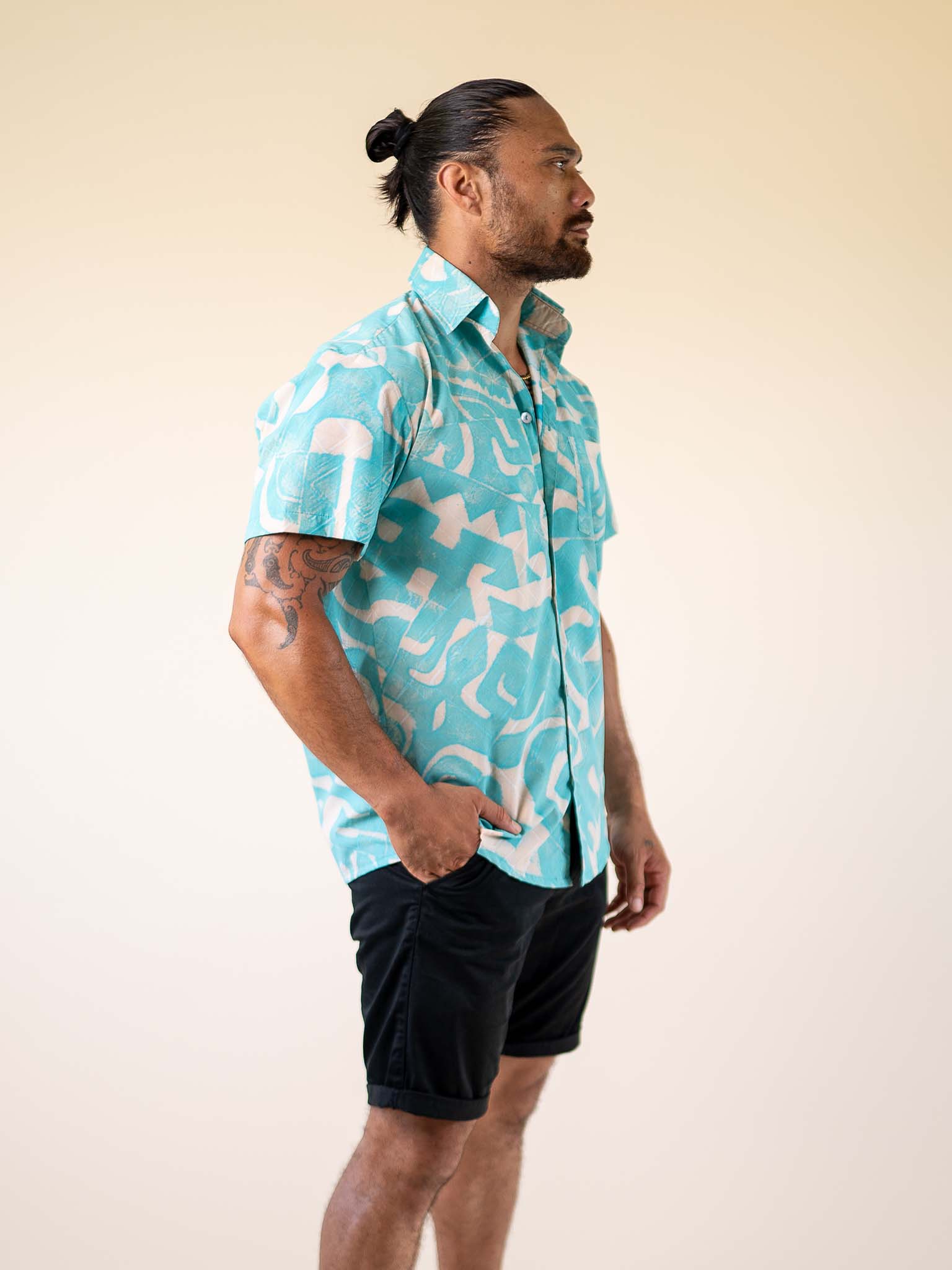 Designed for a boxy loose fit the Taputu shirt is the shirt to get you through those hot tropical nights. Featuring Mother of Pearl shell buttons for the authentic tropical touch.