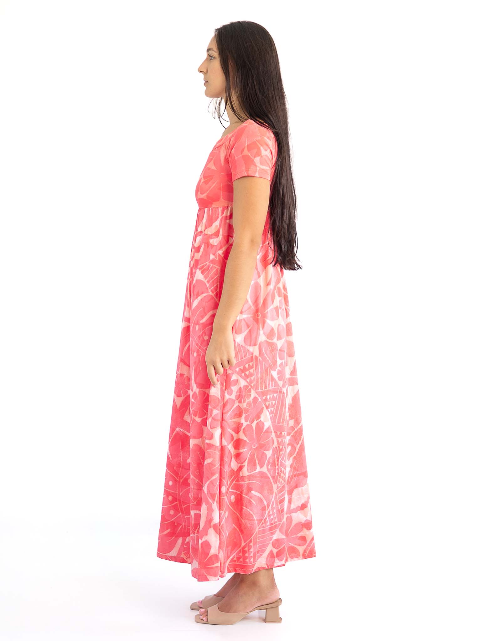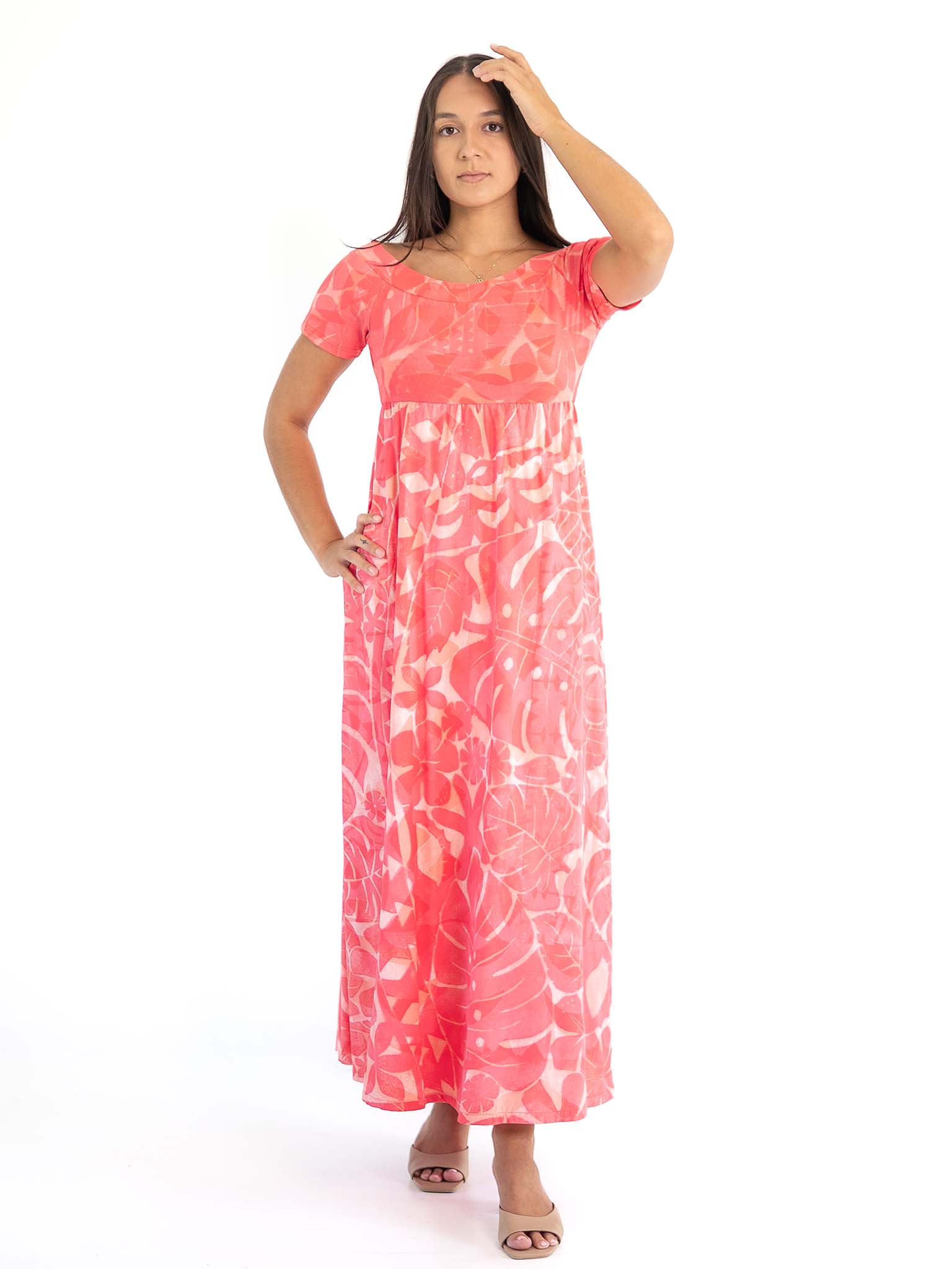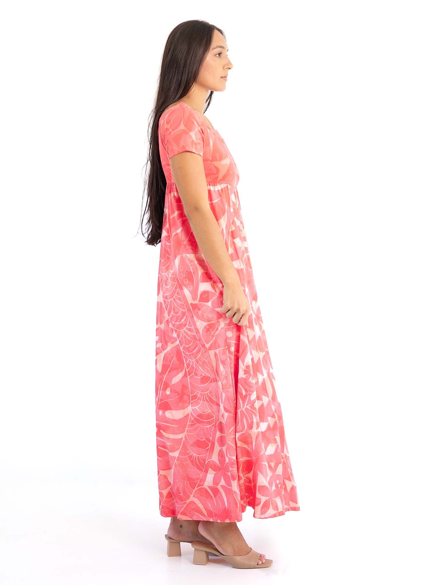 Crafted from a 100% cotton lycra bodice that cinches just below the bust with a flowing a-line skirt. A scoop neckline with a short sleeve which can be worn on or off the shoulder. Cinching just below the bust and flowing to the ankle, the skirt of this dress is cut from Cotton Rayon with a Cotton Lycra bodice.