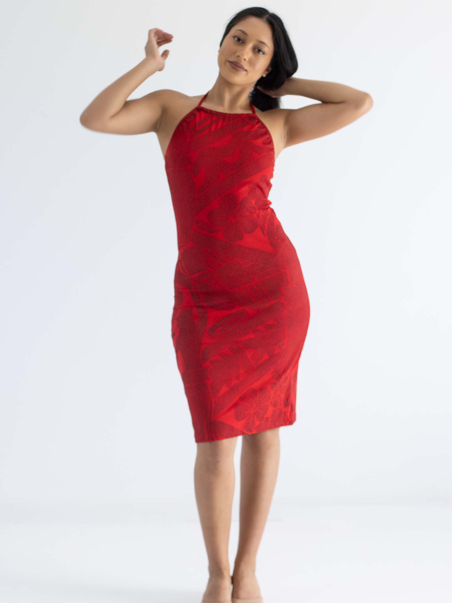 Crafted with 100% cotton. The Terii Dress Mid is the perfect fitted bodycon with a halterneck tie. A classic dress made to suit various body types.