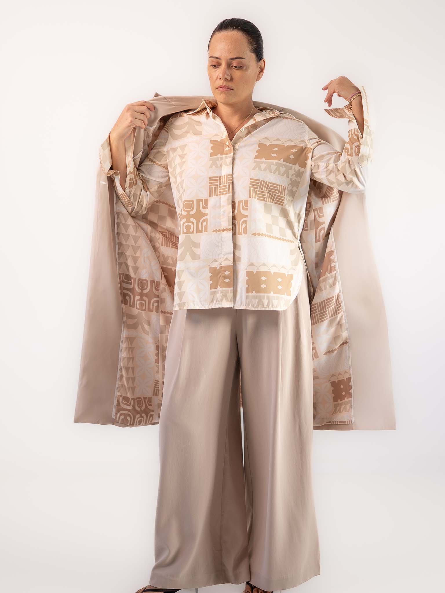 TAV PACIFIC is made from a unique blend of traditional motifs and modern elements of Pacific cultures; hand - carved onto printing boards by Tavioni family artists.